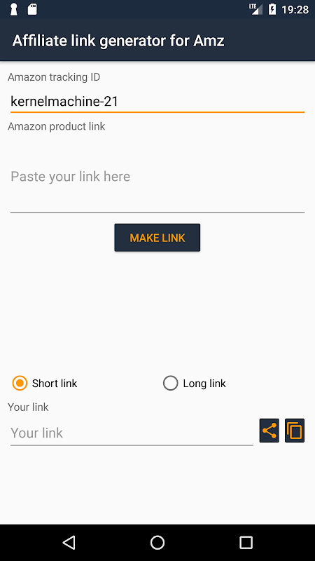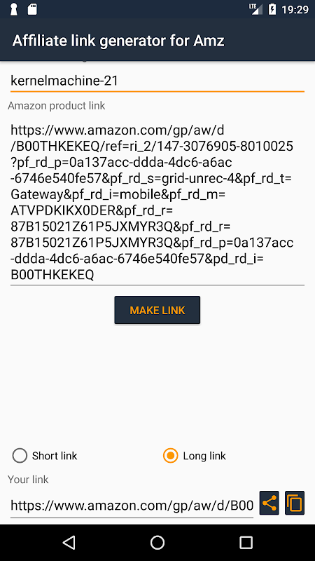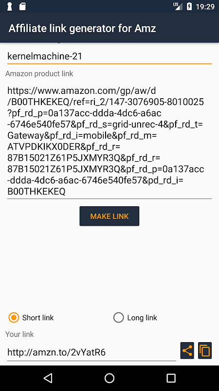 Share an amazon product from Amazon app or your web browser and get the link associated with your trackingID instantly.