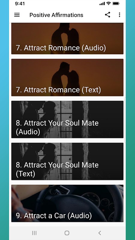Features: Affirmation categories, audio and text, male and female voice
