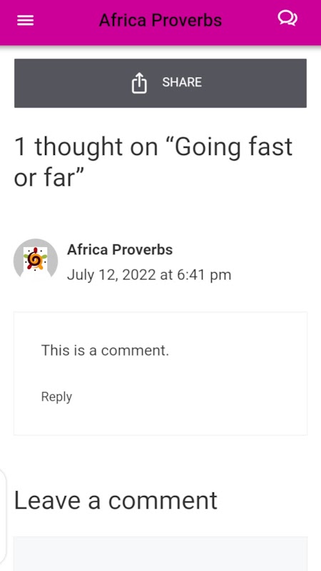 Africa Proverbs provides free African Words of Wisdom every day. The app enables you to add and share on your social media accounts and on our website your own proverbs or comments. No registration is required.