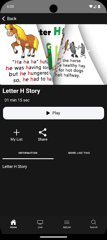 ● Programming Guide Access: Click the 'DETAILS' button on the homepage to go directly to the live tab, where you can view the live broadcast schedule with show times and titles.