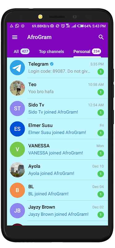 AfroGram is number 1 Telegram client app with extra features and extra everything