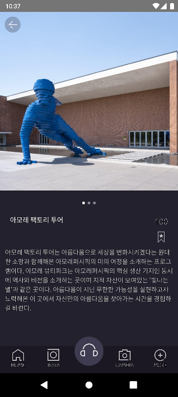 This is an Amorepacific Factory Tour audio guide app designed so that you can easily view the exhibition works through mobile.