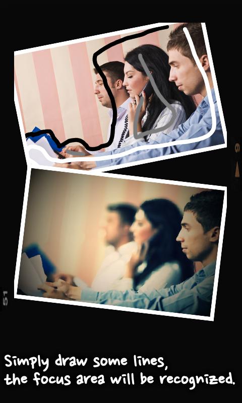 Simply draw some lines inside a focus area and the background, then AfterFocus will automatically recognize the focus area. You can also select the area with traditional finger painting.