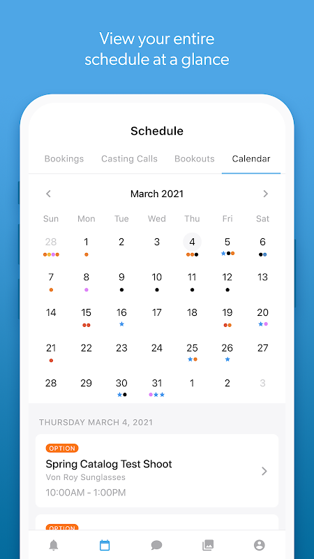 Accept and view upcoming bookings, manage your calendar, create a bookout, upload photos and videos to your gallery, and chat with your agent in real-time via our messenger.