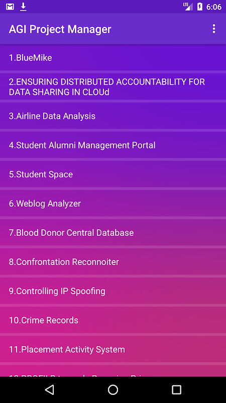 Project Manager is an android application which allows users to refer to the projects which are created by the students in our college. This project aims to update the students about the information, platform, and the various types of tools used to create the projects. Whenever a new project is deployed, our application immediately updates the details of that project .The users are alerted when a new entry is made through notifications.