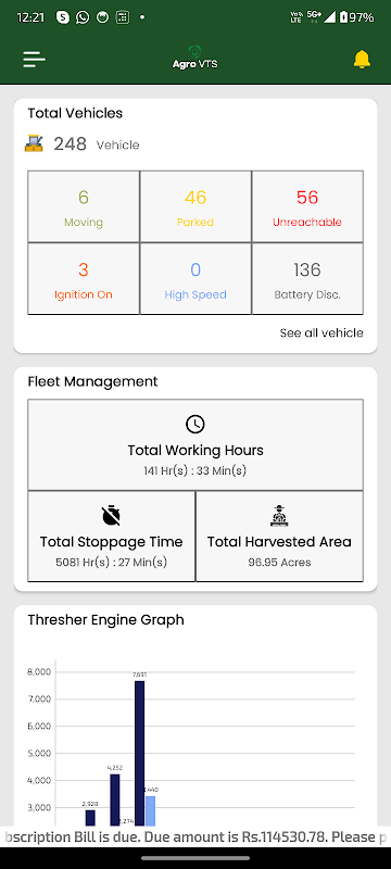 Users can also see their thresher details like speed, distance, location etc and also see their respective locations.