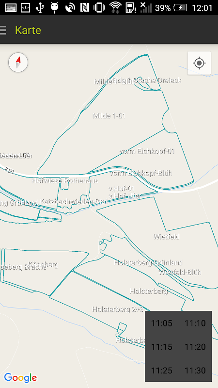 • field boundaries visualized on the map