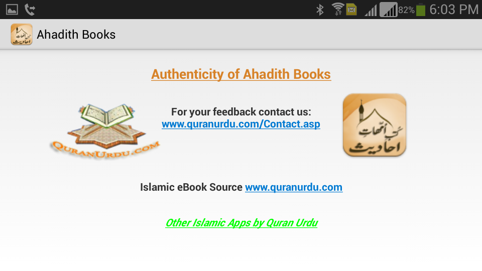 Official Ahadith Books Application By Quranurdu.com.