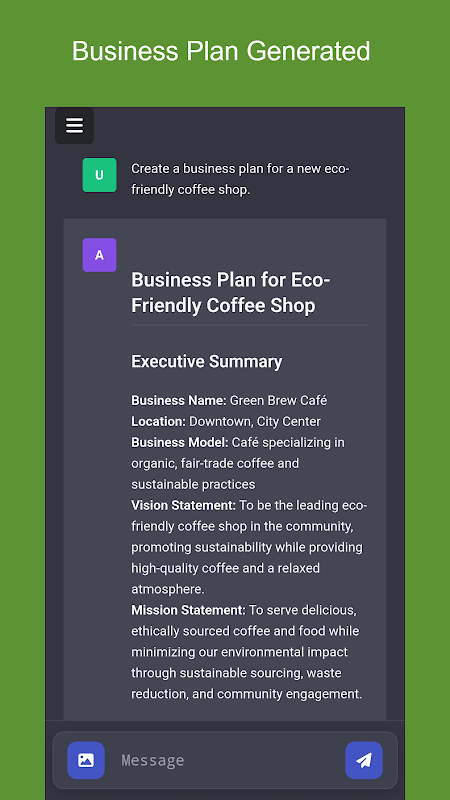Designed with user convenience in mind, AI Business Plan Generator empowers you to focus on your business goals without worrying about the complexities of drafting a comprehensive plan. Whether you’re pitching to investors, applying for a loan, or setting strategic objectives, this app equips you with a professional edge. Start turning your business ideas into reality today!