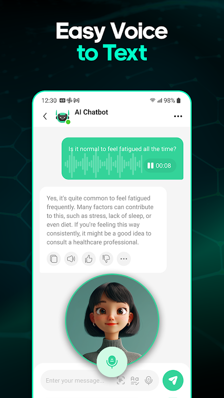 Use voice-to-text to speak your questions, or have the AI chatbot assistant read answers out loud. Great for multitasking or using your voice instead of typing.