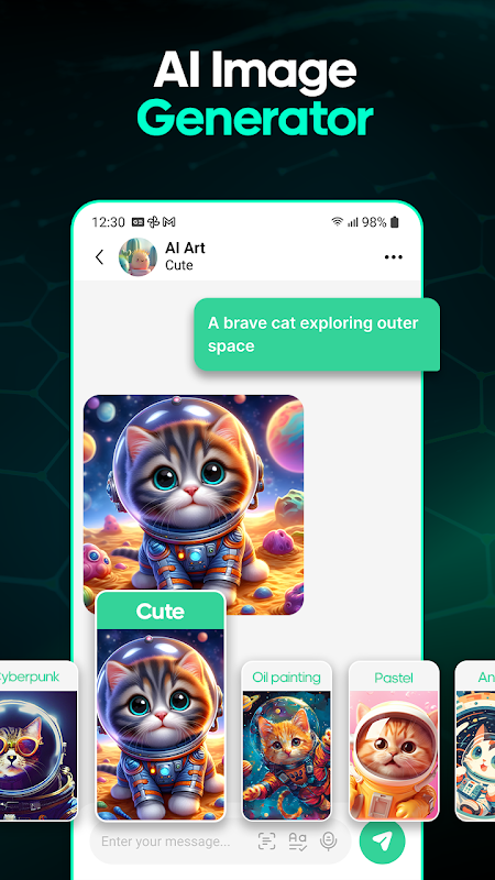 ● Bring your ideas to life with the built-in image generator. Choose from styles like oil painting, geometric, or pastel perfect for personal or creative projects.