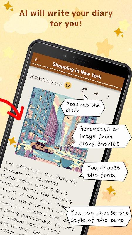 The AI will automatically generate an image that matches your diary entry.