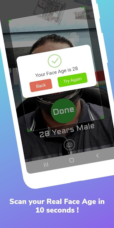📸 Real-Time AI Age Scan – Works with your front or rear camera.