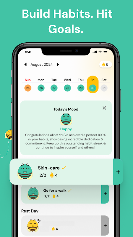 🐝 Playful & Motivational: The bee avatar makes tracking fun, not tedious.