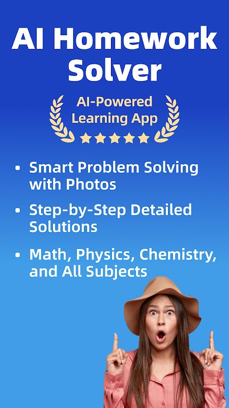 AI Homework Solver is your personal AI-powered study assistant. Simply snap a photo of any math, English, or science question, and get instant step-by-step solutions with clear explanations.