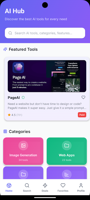 Welcome to **AI Hub**, your go-to mobile application to discover, explore, and use the most powerful AI tools across every category. Whether you're a student, content creator, developer, marketer, or business owner, AI Hub is designed to make your AI journey effortless and inspiring.