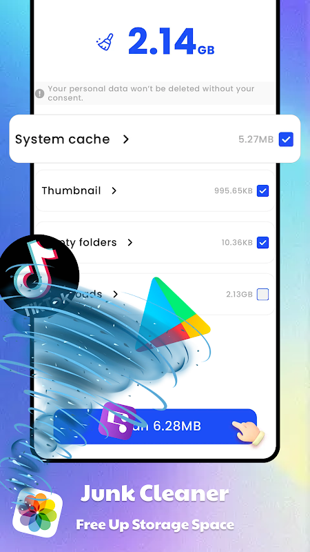 The core functionalities of the application, including junk file scanning and large file detection, require the "All files access" permission to operate effectively.