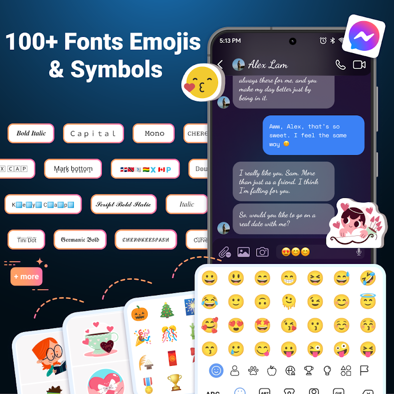 🌈 Theme keyboard & font styles: Customize your social media interface with over 2,000 emojis, 60 fonts & 100 keyboard themes. AI Keyboard: Writer, Grammar allows you to express yourself creatively across all popular writing apps.