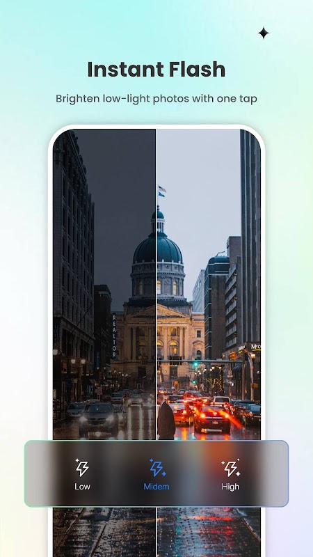 ‒ Use the AI Photo Enhancer to instantly sharpen blurry photos, fix grainy or low-resolution images, and bring back lost details automatically. This powerful photo enhancer tool boosts image quality and makes every shot look sharp, vivid, and professional—no manual editing required. The photo enhancer makes it easy to get stunning results with just one tap.