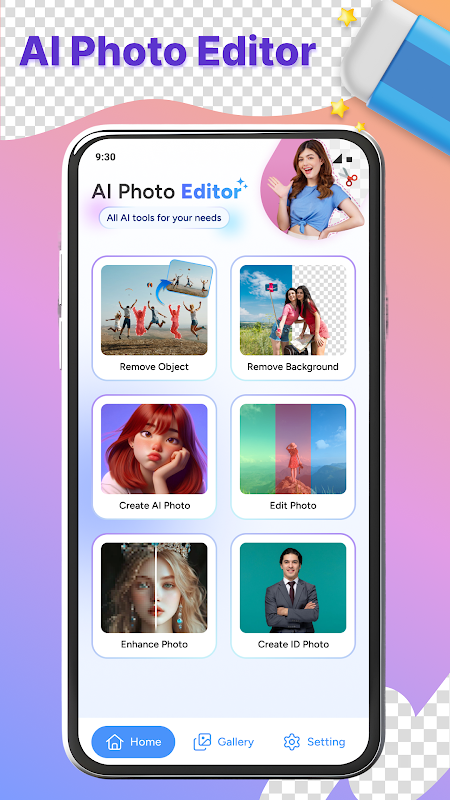 AI Photo Editor: Object Remove is a simple and powerful photo editing app that combines an advanced object remover, a smart background eraser, a professional photo enhancer, and creative AI art generator tools. It helps you remove objects, clean backgrounds, enhance photo quality, and transform your pictures into artworks – all in one ai photo editor app.