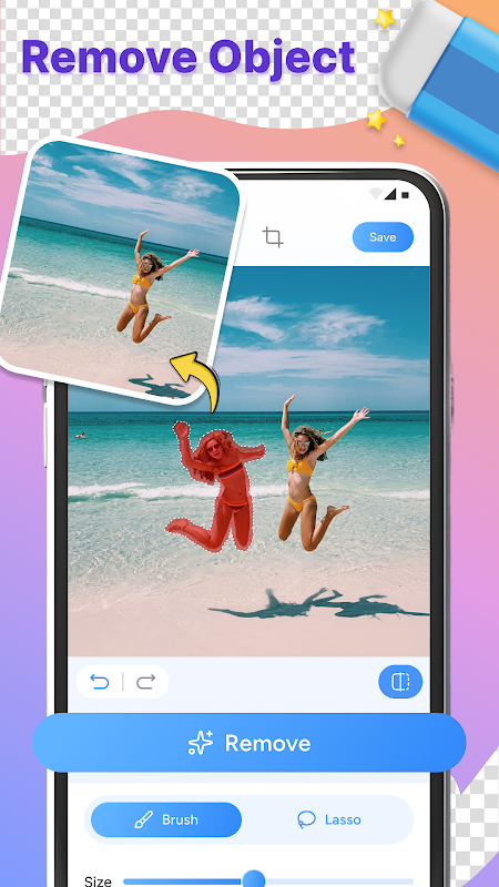 Easily delete unwanted objects, people, or details from your photos. The magic eraser app provides clean and natural results without affecting image quality.