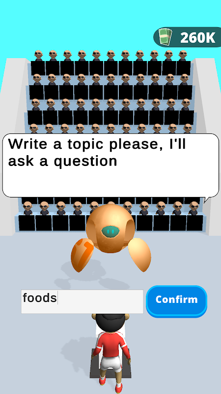 Write some keywords, the AI will ask a question accordingly. Then choose the right option and beat all opponents.