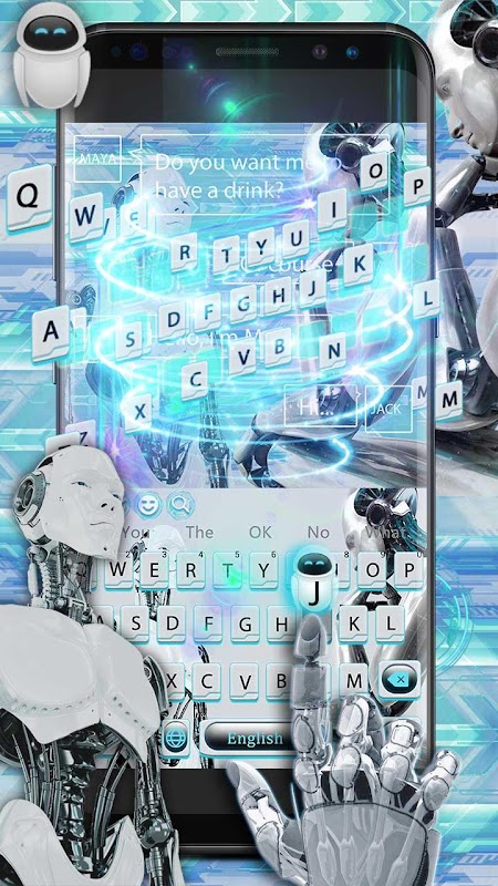 3) "keyboard" (AI robot technology & holographic tech neon typewriter) installed and applied,AI robot technology & holographic tech neon keyboard(AI robot technology & holographic tech neon typewriter) will automatically install on the phone.