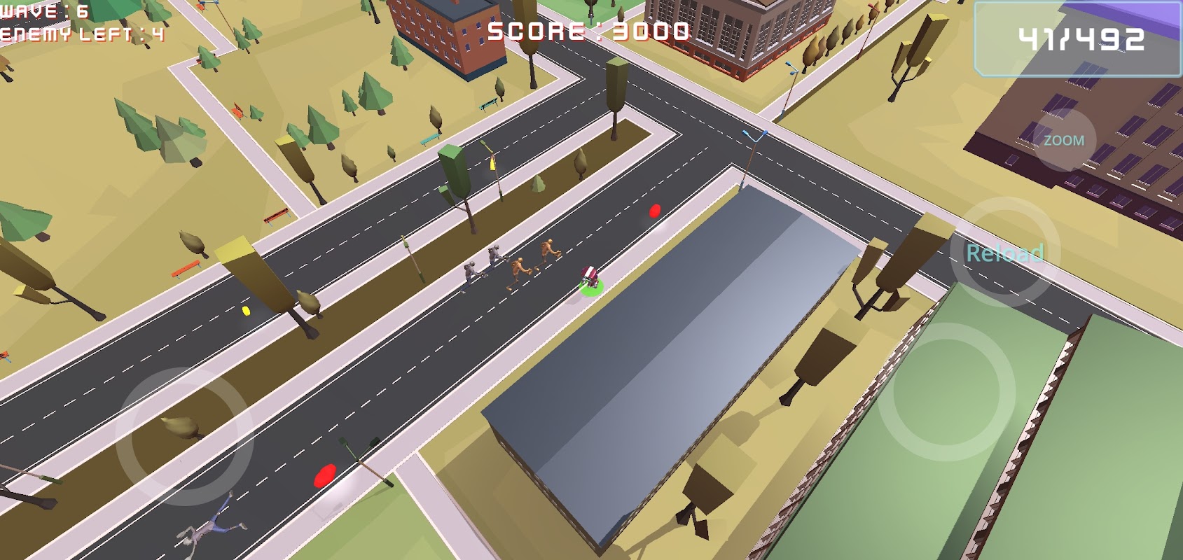 Kill the zombies lurking in the city. Unmanned city robot kills zombies.