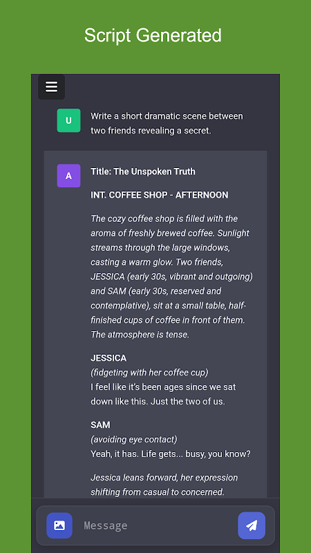 Transform your ideas into compelling scripts with AI Script Generator, the ultimate tool for creating engaging and professional-quality scripts effortlessly. Whether you're a filmmaker, content creator, playwright, or student, this app serves as your go-to AI Script Writer to bring your visions to life with precision and creativity.