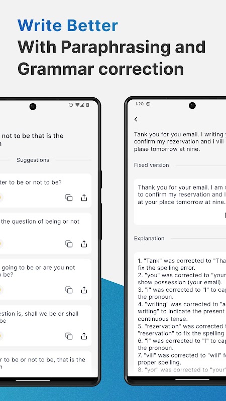 Summarize, paraphrase, improve and fix grammar. All in one powerful app.
