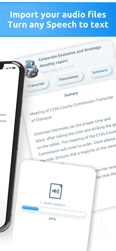 ● Business Meetings: Never miss a single detail from your important meetings! AI Transcribe turns your meeting audio into accurate text summaries. It captures key points, action items, and decisions instantly, allowing you to focus on what matters without the hassle of note-taking.
