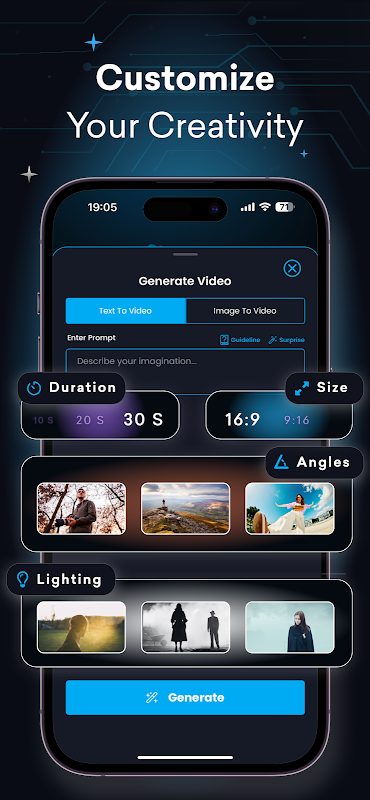 - Enter Text or Image: Begin with a text prompt or an image to set the direction of your video.