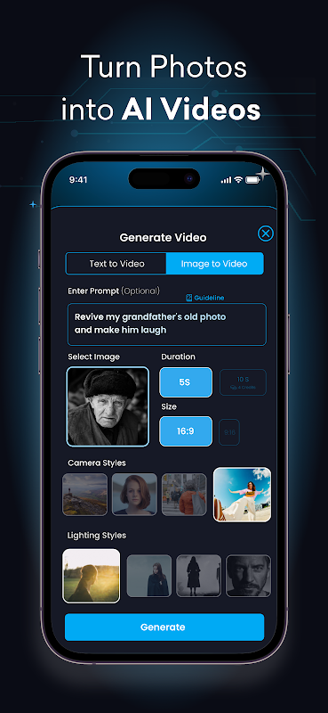 - Share: Post your AI Videos instantly to social media or send them to friends.