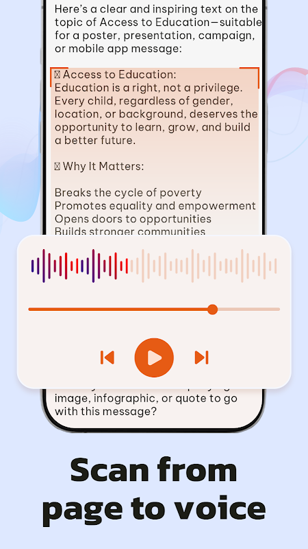 AI Voice is a powerful Text to Speech (TTS) app that transforms your written content into clear, natural-sounding speech using high-quality system voices — absolutely free. While the voice generation does not rely on AI, we use advanced AI algorithms to summarize large texts and make your content creation faster and easier.