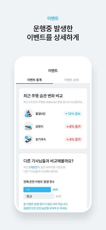 A smart driving management service that provides accident prevention and safety scores through AI driving habit analysis.