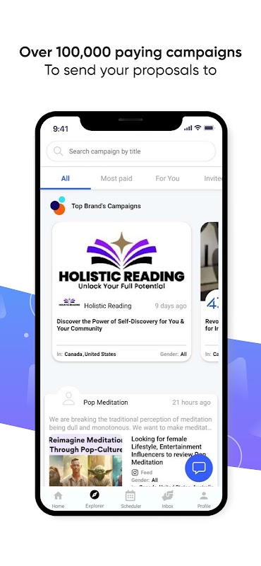 🌐 Explore Marketplace: Browse deals and campaigns from diverse brands.