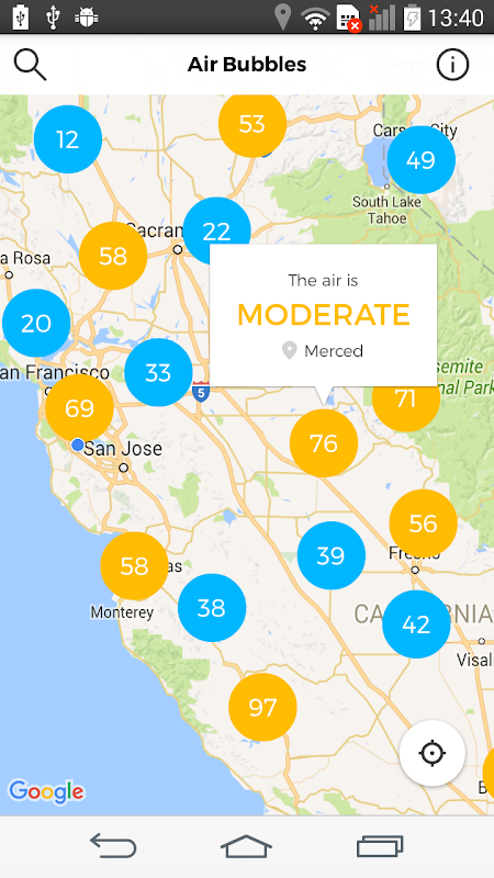 Tired of breathing smoggy air? Check out the air quality around you in real time. Air Bubbles shows you a map of how healthy or dangerous the air is around you and alerts you when the air quality is getting worse. From Los Angeles to Beijing, Air Bubbles can inform you with colorful bubbles that represent air pollution levels.