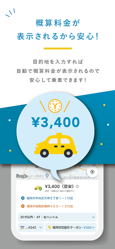 *When using a driving agency service using this app, you will be required to pay the prescribed fee set by each driving agency, just like when ordering by phone. Please check the price upon arrival.
