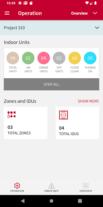Turn off all indoor units of VRF systemTroubleshooting with error tracking and history display of indoor and outdoor units