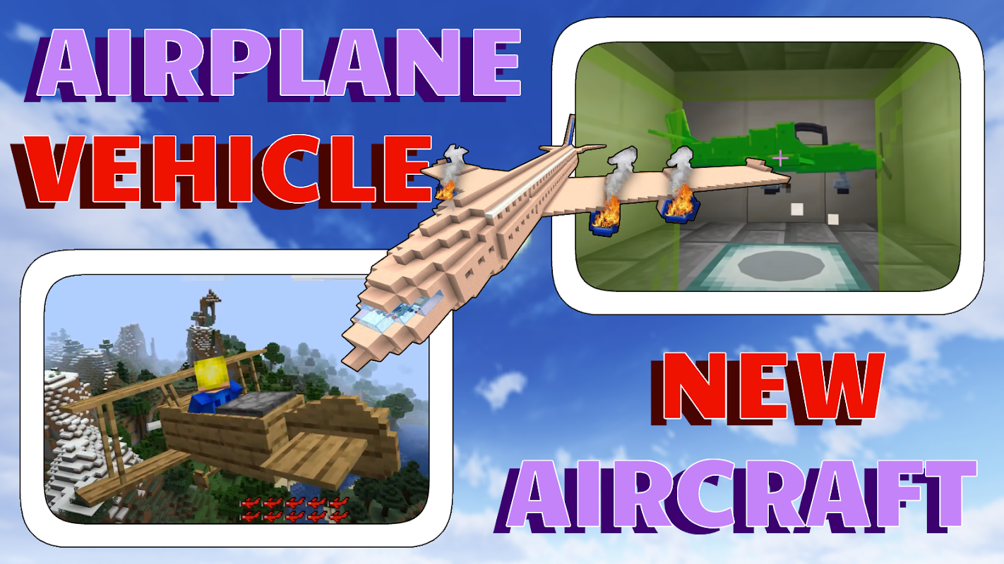 If you are tired of the usual adventures, there is no more interest in digging gems in caves - do not be discouraged, now you can conquer the clouds too. During quarantine, you will have a great way to go outside your pixel home and travel around the world through the biomes of your map and even go beyond it into space. You also have the opportunity to become a pilot, astronaut, superhero, iron man - just put on the skin you like, although you will not have new abilities, but in conjunction with the plane you will completely immerse yourself in the role-playing game and become a pilot. Some vehicles are equipped with weapons (machine guns) and directly from the air you can shoot at monsters and enemies. Start transporting passengers aboard a Boeing. Both adults and children will get emotions from aviation. This is a cool flight simulator with cool physics and a view, from the height of a dragon flight, the whole planet is at a glance. Control the plane carefully, if you make a mistake it will fall and can destroy the whole city, the plane crash will become more powerful than a TNT explosion. Takeoff animation, landing gear, sound of turbo engines will impress both girls and boys. The mod also contains colorful helicopters, fighters, seaplane, private jet, stealth fighter, bombers and cargo flying transports. Rediscover the pixel world, now neither shaders nor cards will give you so much experience. Each has its own 3D texture and camouflage that makes the owner unique and the most popular on the server. If the underworld was dangerous for you, now you can fly away behind the clouds and hide from the parasites that populate the dark caves. Hot air balloons, dangerous descents and other adventures are already waiting for you. Explore the world but first craft everything for fast travel. Show your imagination and surprise your enemies by attacking them from a height. More than 8 types of aircraft with easy control. The game will become extreme and the world of virtual reality will become even more interesting. Cruise the liner over bustling new york and sunny vegas. By becoming the owner of a paraglider or other flying vehicle, you will outstrip any car, even an elite Tesla or BMW. In the creative inventory, you will need iron nuggets, and copper ingots. Once aboard the ship, you will have an ATC radio, a fire alarm, engine smoke, and a door animation.