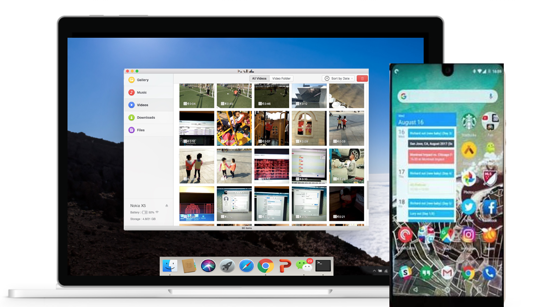 Manage photos, ringtones and videos, upload, install and export apks from phone.