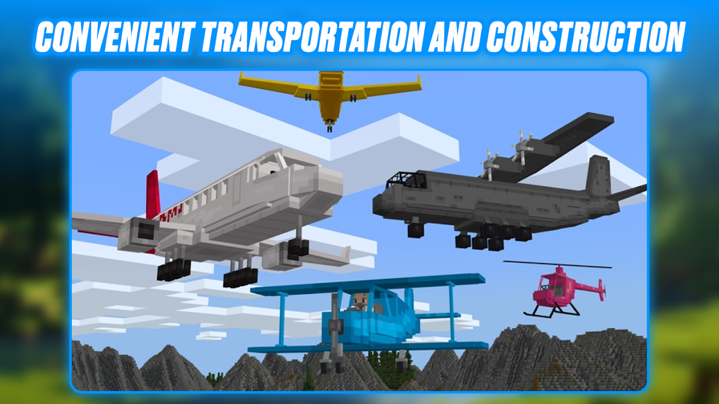 Vehicle Airplane Minecraft Mod 2024 PE will become your garage in which you can store your celestial vehicles. You can build airports all over the planet, their number is not limited. Survival for your maps will become much more convenient, because this addon AirPlane mod MC Pocket Edition will add a lot of comfort to your life. Each flying machine will be special in its own way, your craft map in survival mode will not be the same, with the addition of the Vehicles Airport Airplane mod addon for MC PE in survive mode.