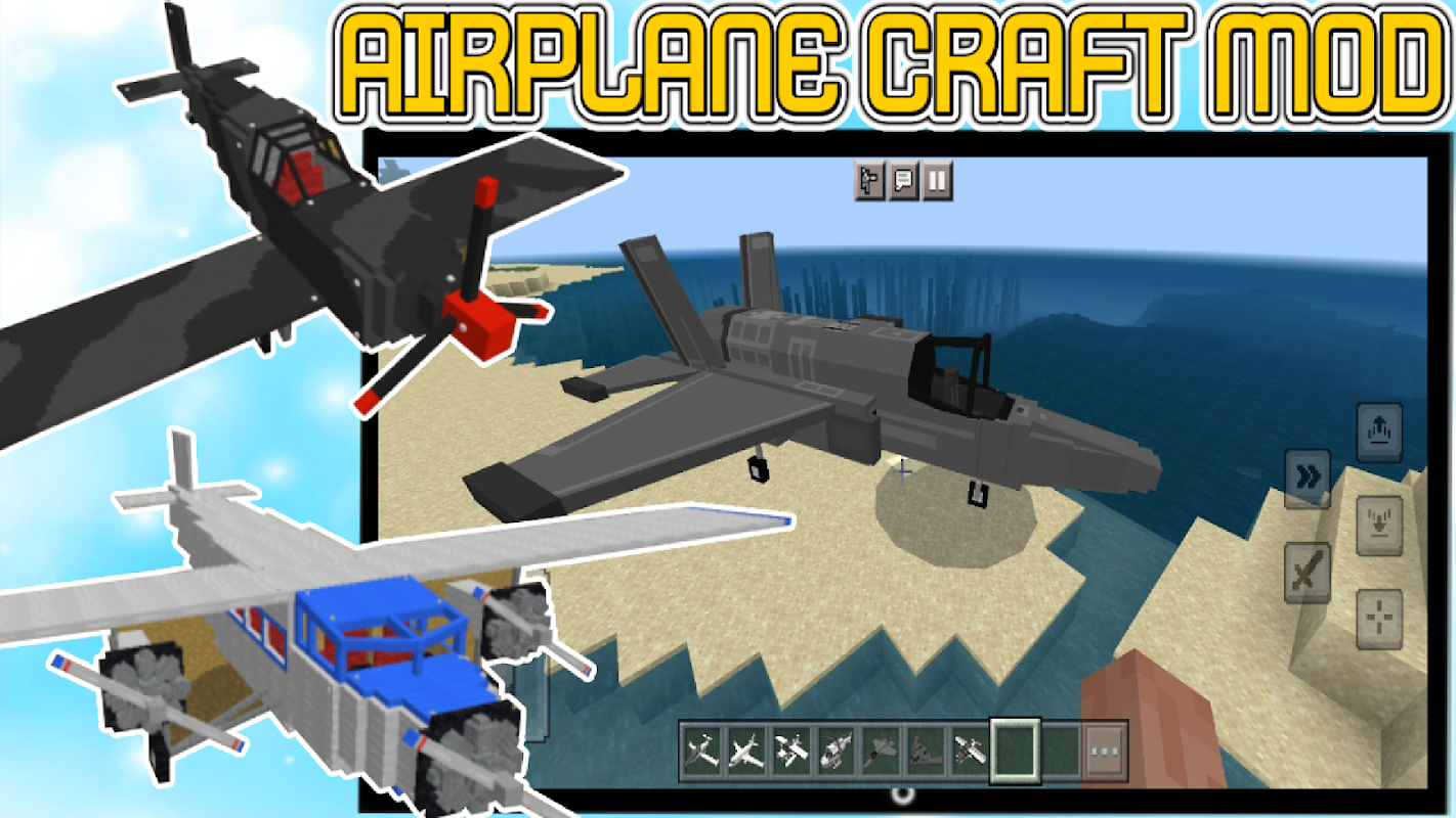 Aircraft mod for Minecraft is action packed and focused on aerial PvP combat and exploration of Minecraft PE cubic biomes. They often have colorful 3D cartoon graphics and a variety of aircraft to choose from: several types of biplanes, large planes and airliners, military aircraft.