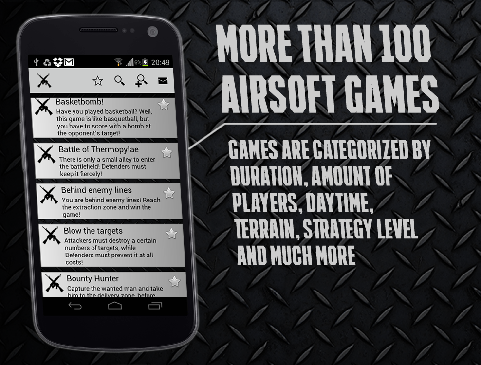 Find new possibilities for your airsoft battles! More than 100 different games.