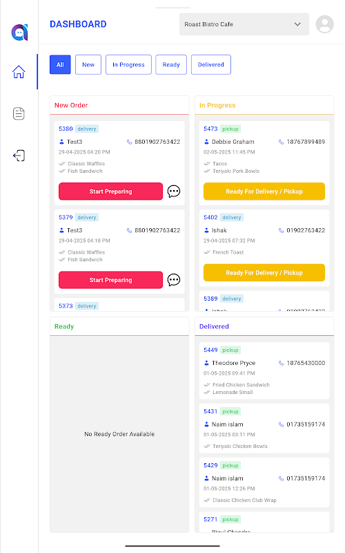 - Mark the order as ready and its list