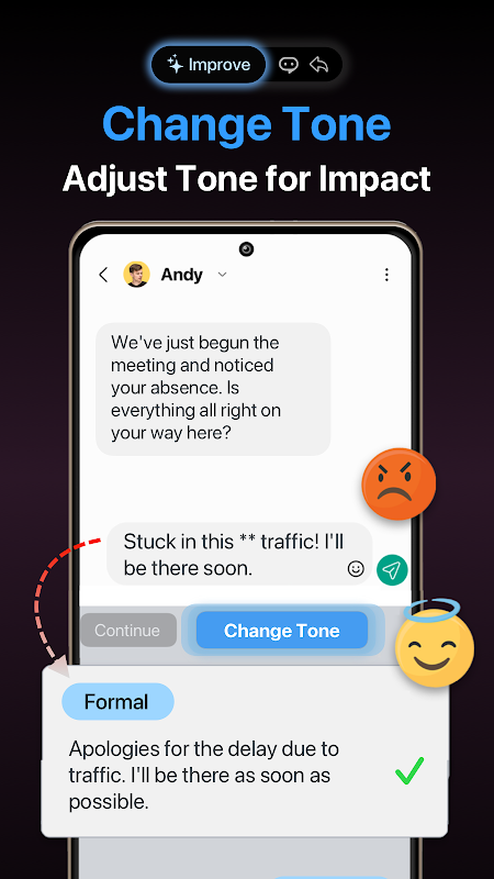 - Change Tone: Adjust text tone to match context.