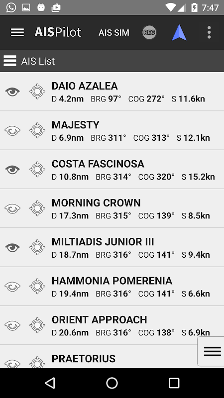 The application provides real-time AIS data , supporting different sources, WIFI and Bluetooth AIS devices, GPS Bluetooth and Built-in GPS.