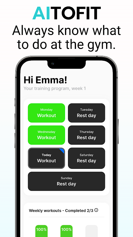 Aitofit is your gym workout coach that always knows how you should workout in the gym.