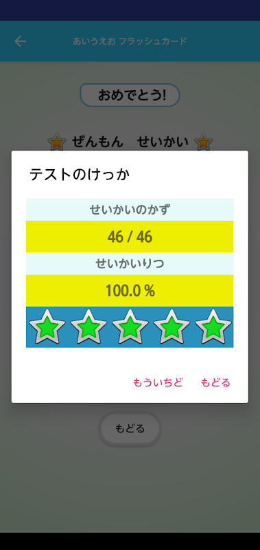 If you push the test button, you can do a quiz-type test in which the AIUEO button is pushed to the right.