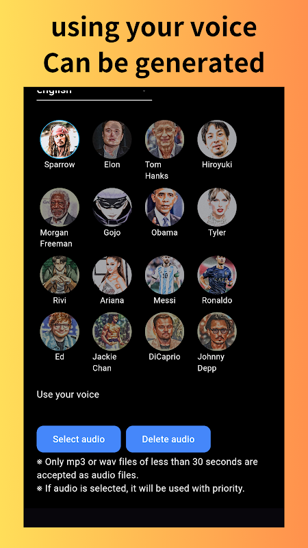 The sounds that can be generated are various, such as various celebrities and anime characters. Create your own voice!
